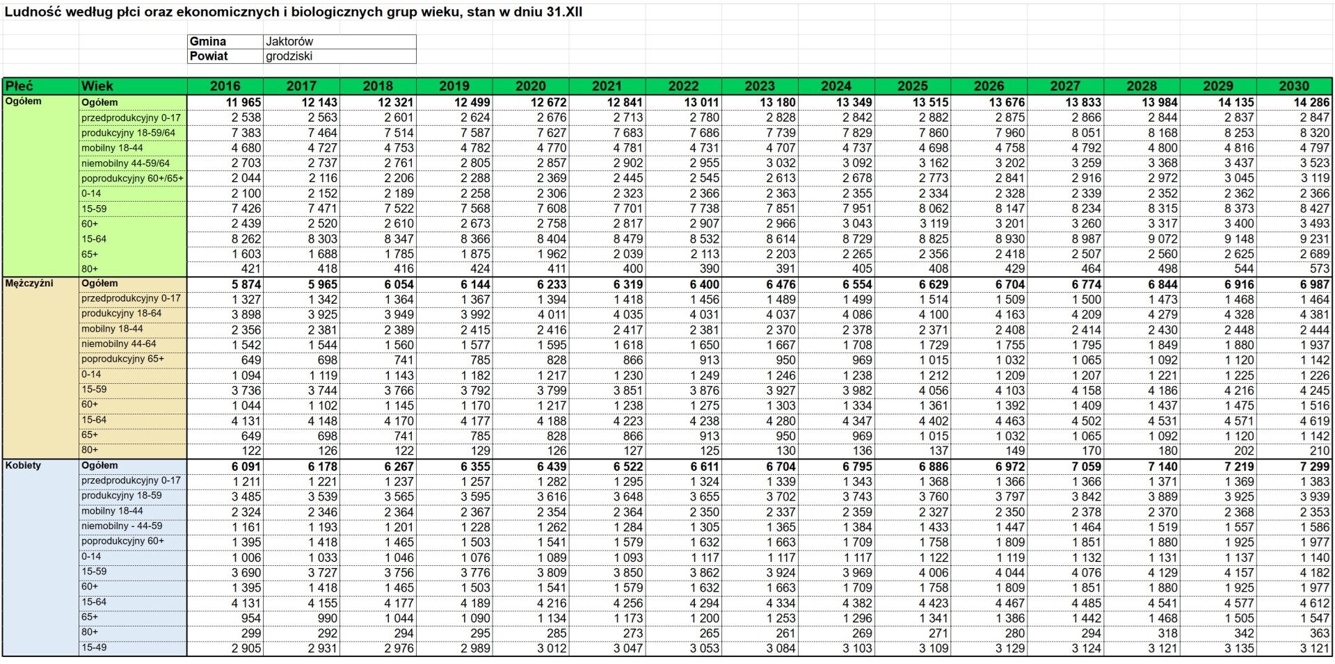 Gmina Jaktorów to jeden z najszybciej rozwijających się obszarów w regionie, co potwierdzają twarde dane Głównego Urzędu Statystycznego. Powyższa tabela wskazuje na stały trend wzrostowy liczby mieszkańców, który według prognoz GUS utrzyma się co najmniej do 2030 roku.
