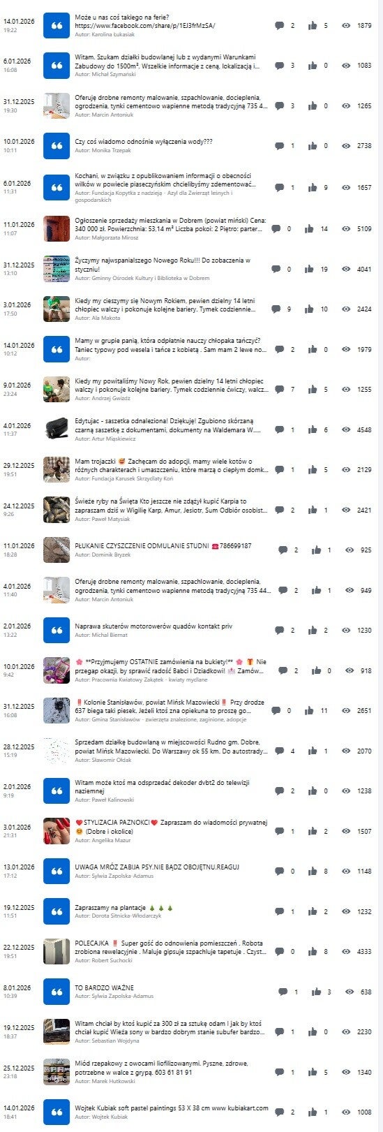 Stały napływ nowych odbiorców: Obszar ten przyciąga osoby aktywne zawodowo i młode rodziny, które szukają informacji o nowym miejscu zamieszkania właśnie w naszych grupach.
