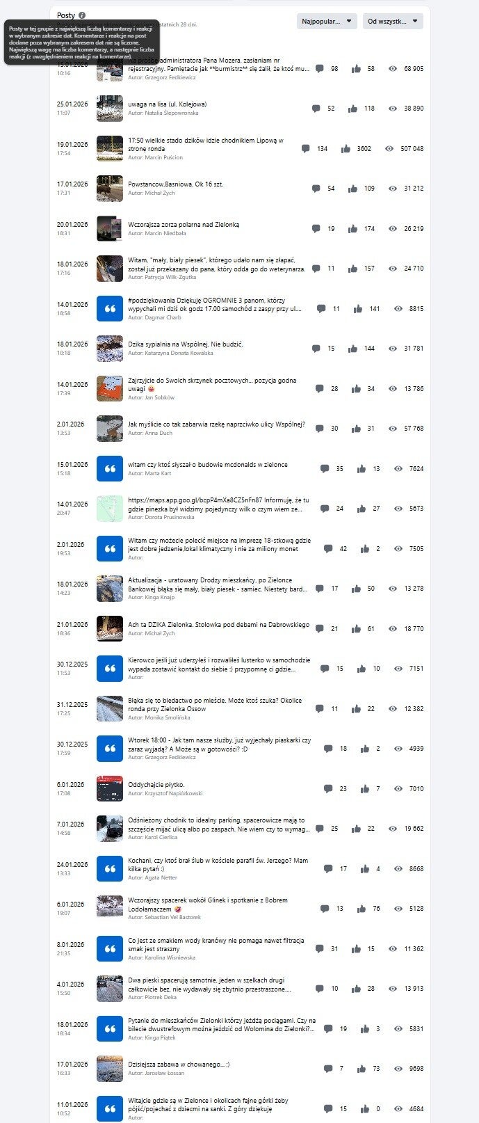 50 tematów z największą aktywnością z ostatnich 28 dni: